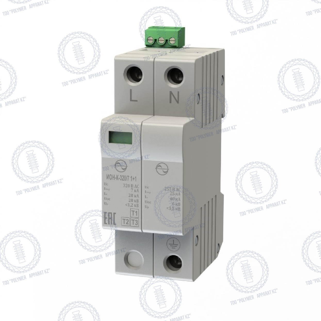Параметры в цепи подключения L-N: Uc = 320 В АС/ 420 B DC, Iimp (10/350) = 7 кА.