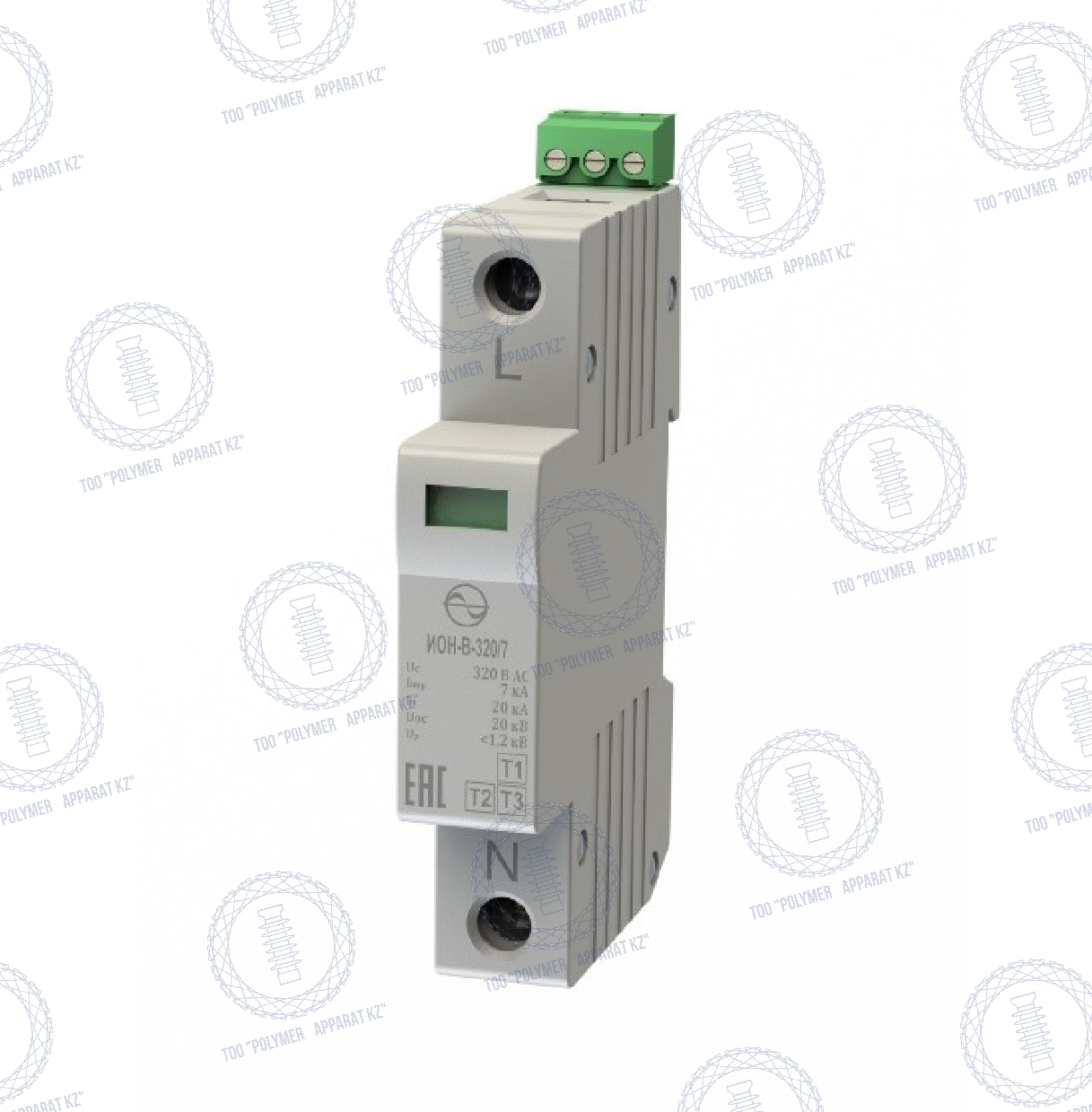 Параметры в цепи подключения: Uc = 320 В АС/ 420 B DC, Iimp (10/350) = 7 кА.